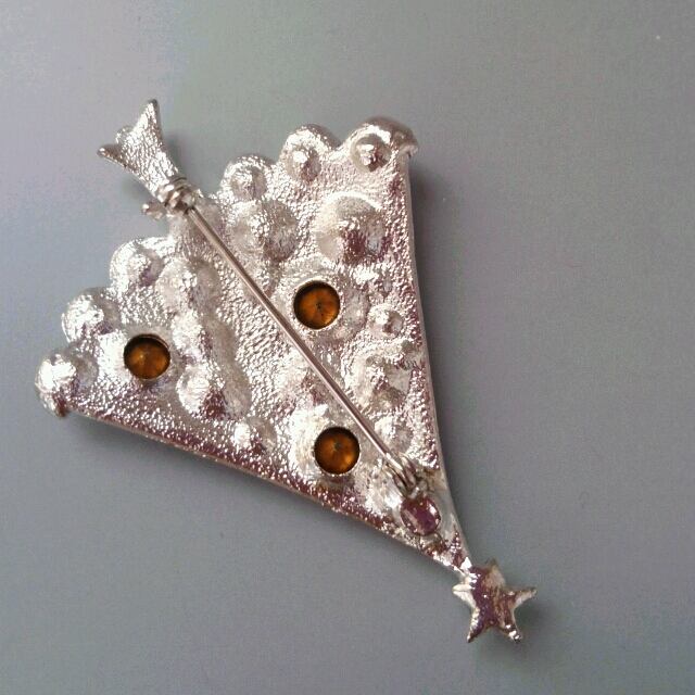 シルバートーンのベースに、クリアカラーとペリドットカラーのラインストーンが散りばめられた、エレガントなクリスマスブローチ!